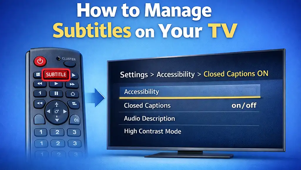 På många modeller är undertextkontrollen snabb och bekväm — vissa fjärrkontroller har till och med en dedikerad knapp för undertexter för omedelbar åtkomst. Alternativt kan du justera dessa inställningar via huvudmenyn. Även om den exakta navigeringen kan variera beroende på TV:ns operativsystem, börjar processen vanligtvis med att trycka på knappen “Settings” eller “Menu” på fjärrkontrollen.